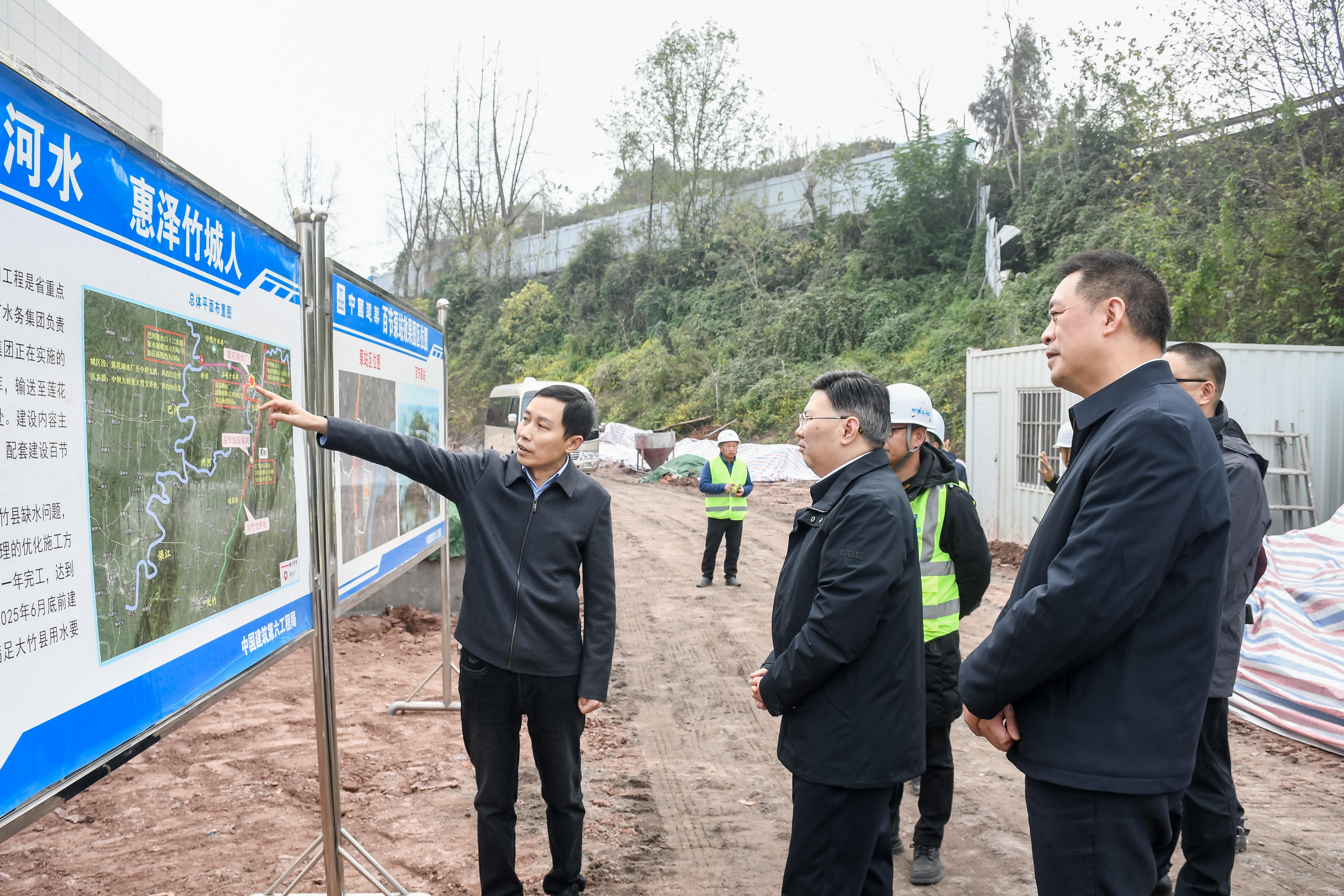 1218,,,,市委副书记丁应虎率队前往“引水入竹”达州段百节泵站调研供水设施调试情形,,,,市人大常委会副主任李大兵加入。。。。。。