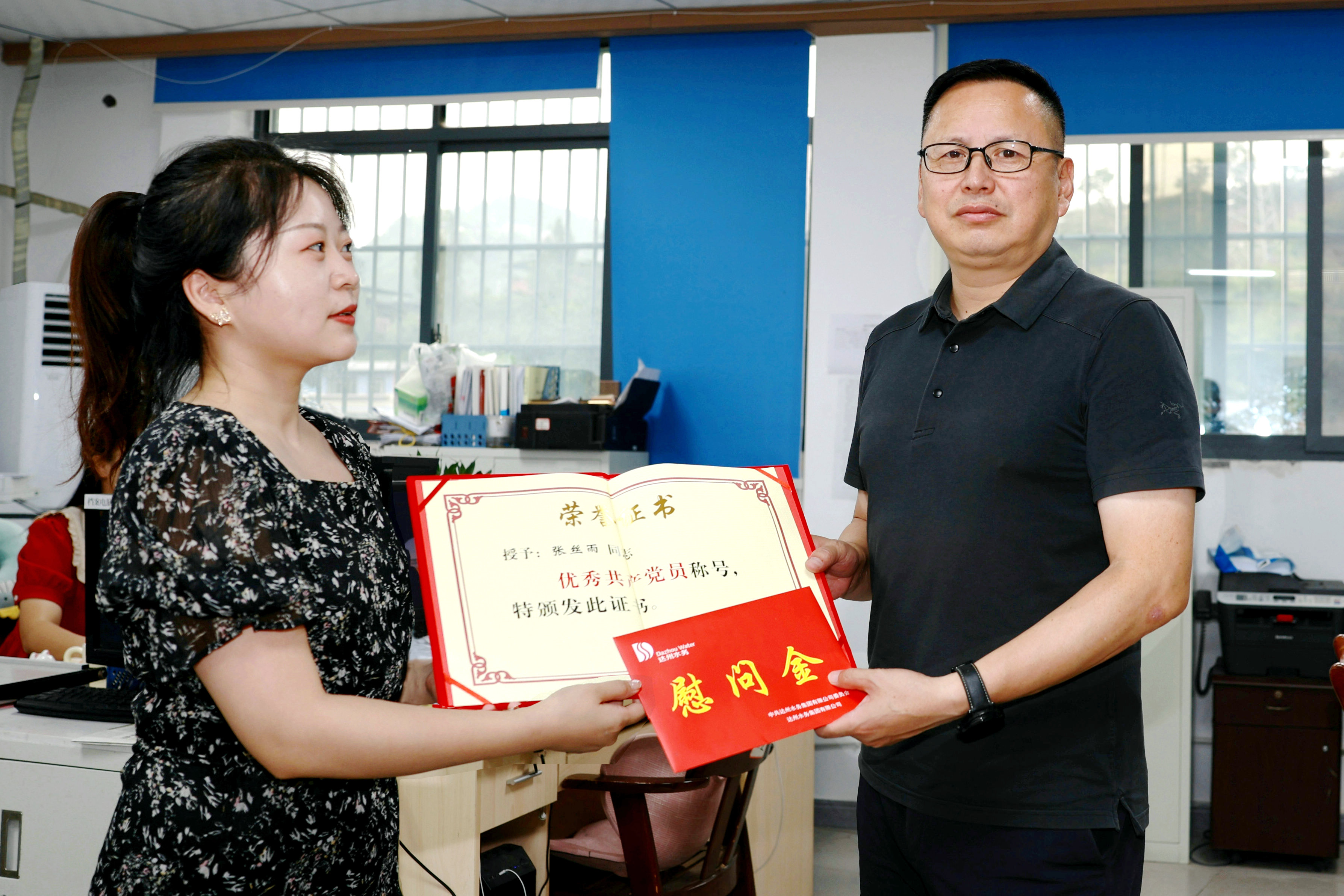 (党委书记、董事长卢辉慰问优异党员张丝雨)