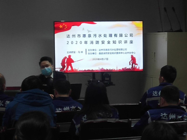 在5.12天下防灾减灾日到来之际,,,为进一步增强全体员工消防清静意识,,,提高自救互救能力,,,2020年4月27日下昼,,,达州市惠泉污水处置惩罚有限公司约请达州鑫政消防宣传中心教官在鲜家坝污水厂起劲组织开展了“消防大培训和应急大演练”运动。。。公司40余名干部职工加入了此次培训和演练。。。
