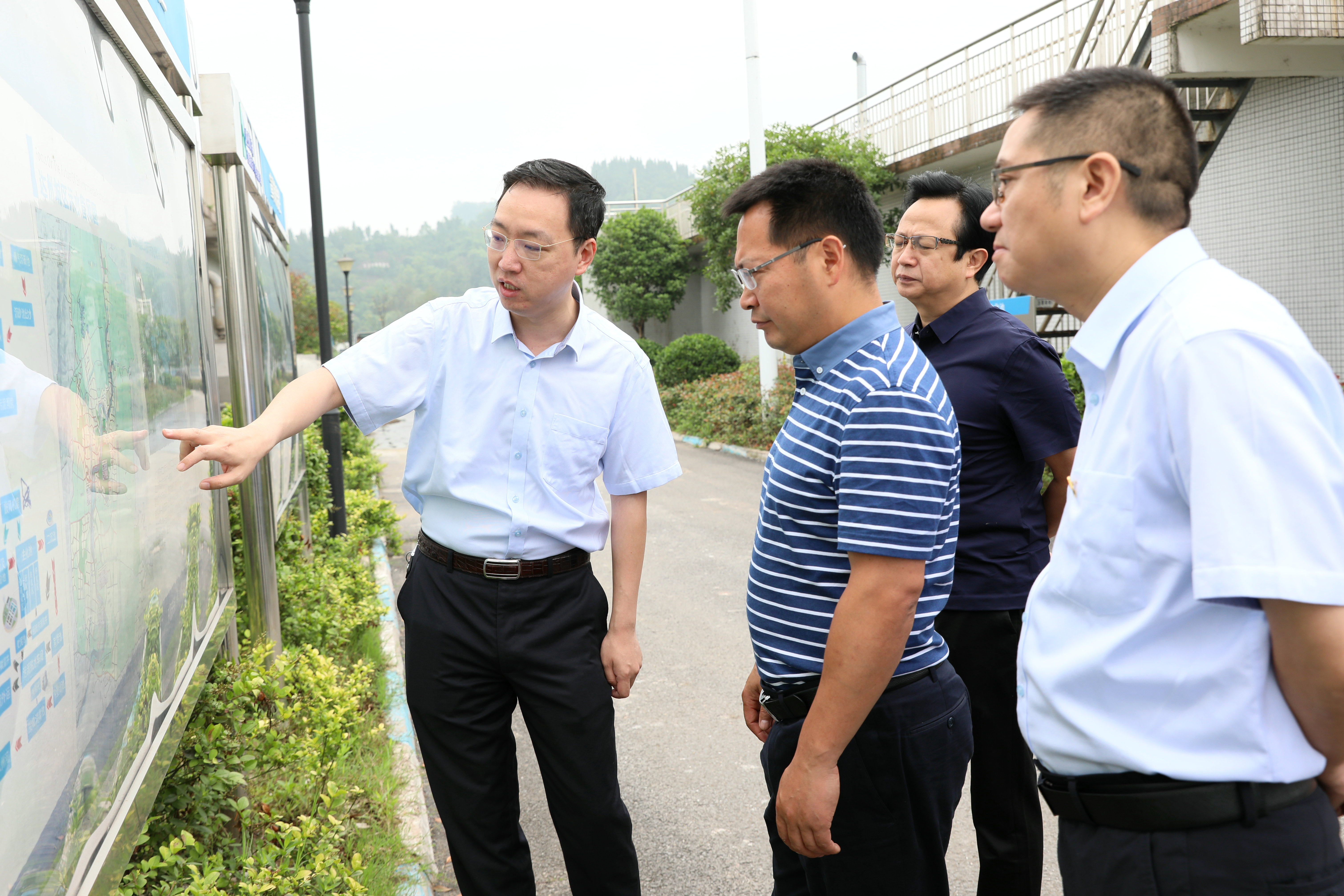 5月26日上午,,,,市政府副市长杜海洋一行5人在市国资委党委书记曾祥勇,,,,副主任潘传勇和集团公司董事长梁浩,,,,总司理熊戈亮,,,,副总司理、惠泉污水执行董事李虹霖等向导陪同下,,,,深入周家坝污水厂调研指导。。。