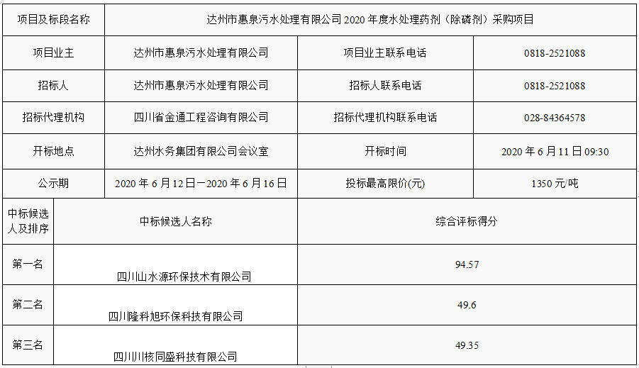 下一篇:达州市惠泉污水处置惩罚有限公司2020年度单过硫酸氢钾复合粉采购项目招标通告