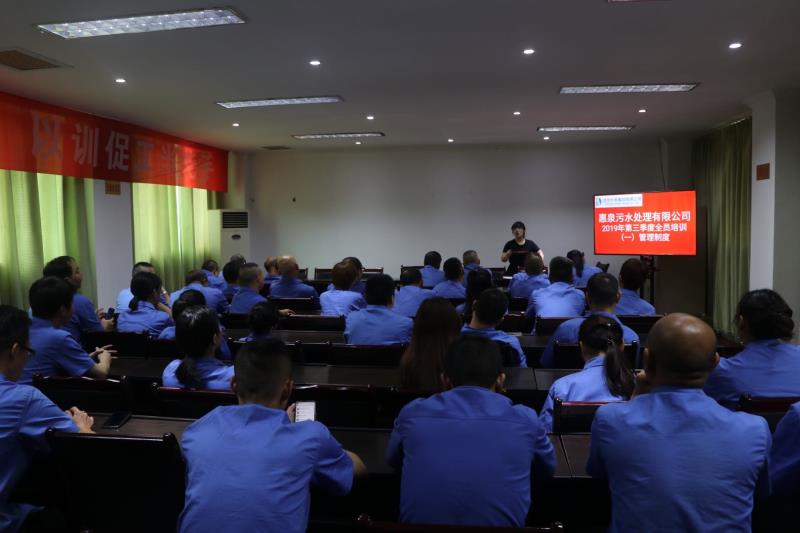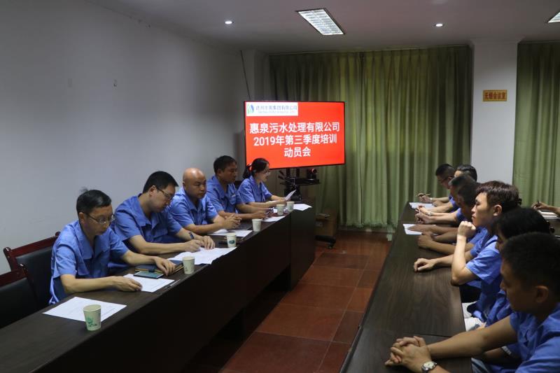 鉴于目今环保新形式需要,,,为起劲打造一支高素质、高效率、高执行力的团队,,,使公司在强烈的市场竞争中展现出较强的生命力和竞争力,,,惠泉公司今年度第二次全员培训在鲜家坝污水厂聚会室开班。。。集团公司副总、惠泉公司执行董事李虹霖出席开班发动会。。。